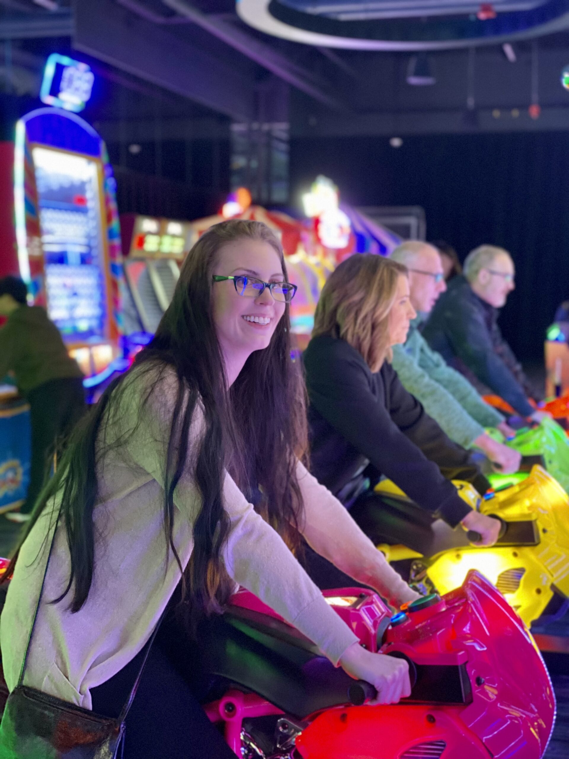 Enjoying some well-deserved fun after busy season at the Flatstick Pub playing indoor putt putt golf.